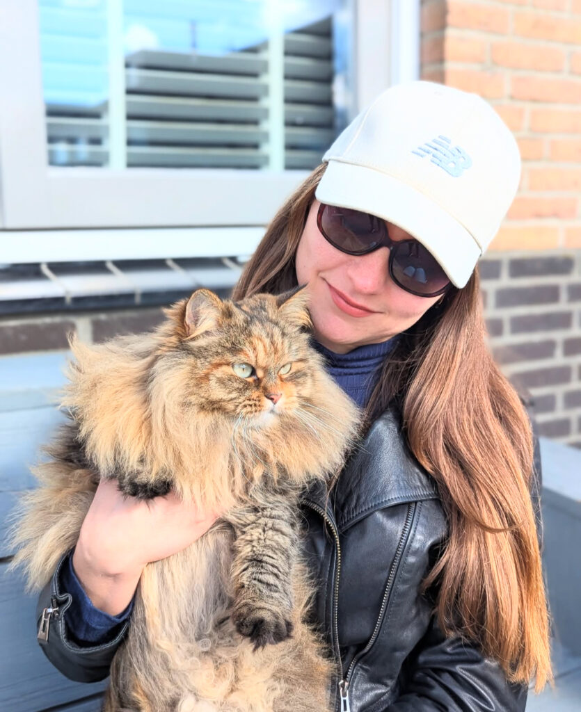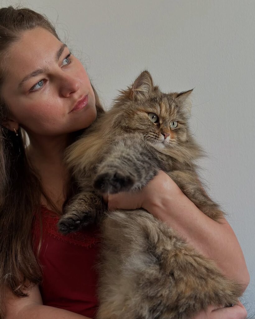As for socialization, there’s not a person or cat she doesn’t like. She assumes everyone who visits is there for her—she absolutely loves people. We’ve had her since December, and now at 9+ months, she is such a good, sweet cat. True to the Siberian cat nature, she loves to play. She’ll fetch a ball all day, and we’ve started her on some basic agility activities, which she loves.
