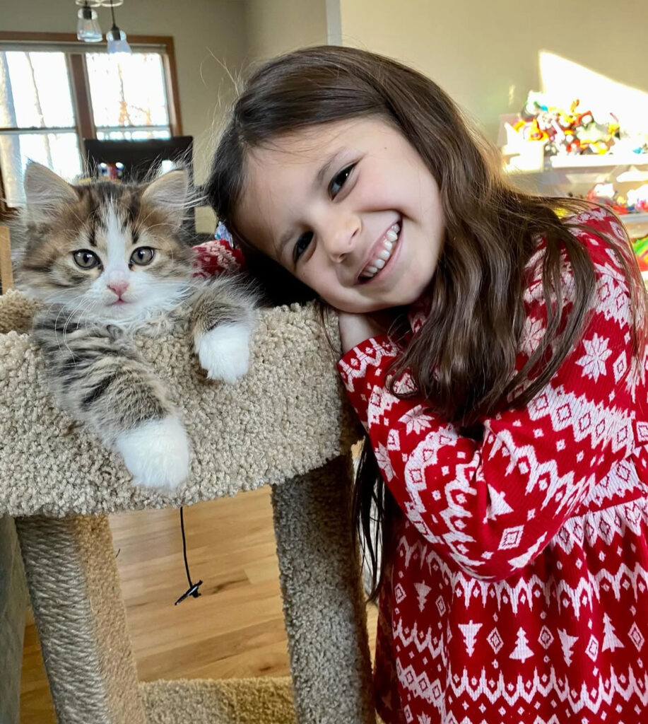 We received our Siberian kitten, Lady, from Woodley’s Siberian Kittens. She has been such a great addition to our family. She loves being playful with the children but is also loving and enjoys cuddling next to us in the evening.